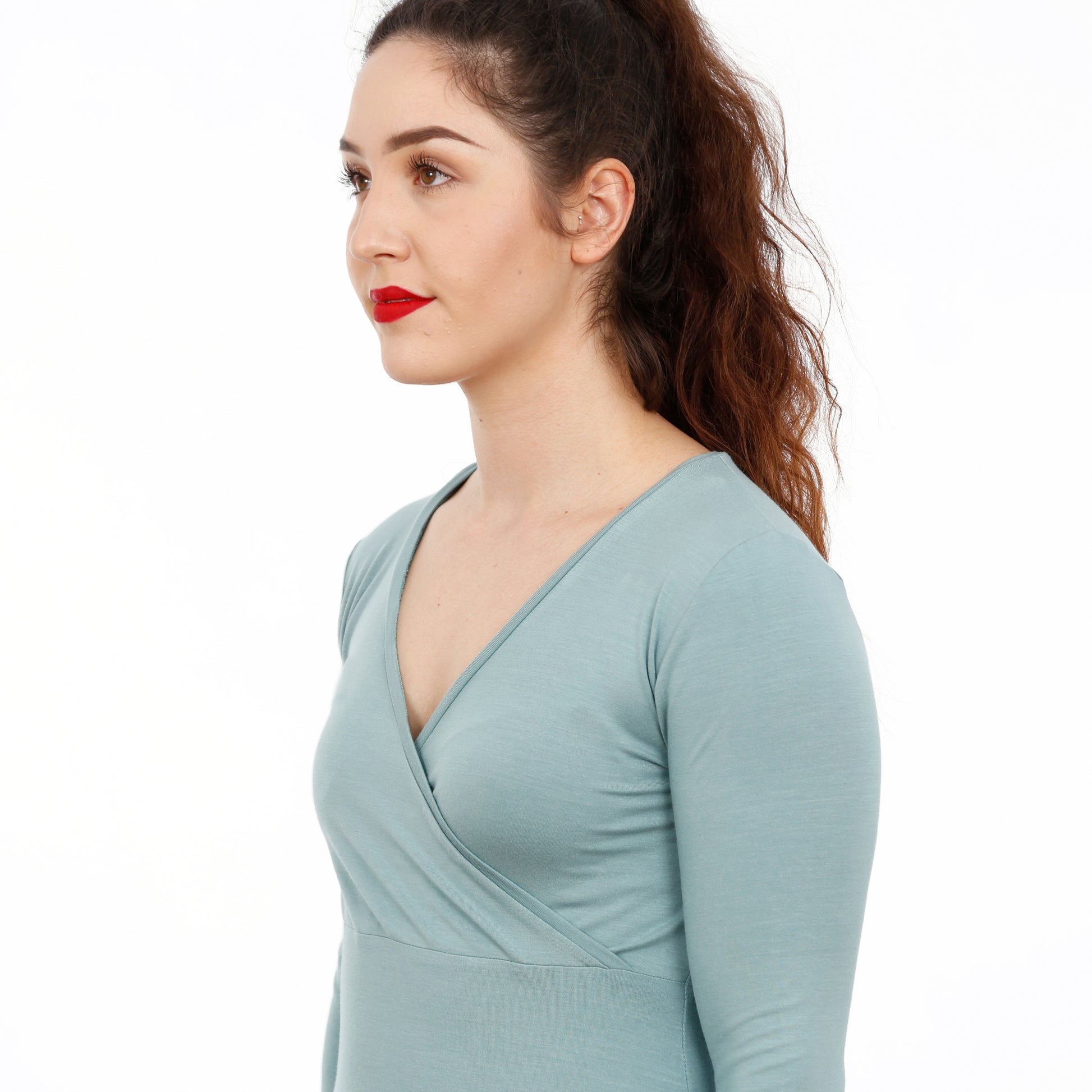FRAU LIESE ist ein zeitloses, schlankes Langarmshirt. Der tiefe Ausschnitt mit Wickeloptik umspielt den Brustbereich und schmeichelt der Figur. Ob sportlich oder chic, mit dem passenden Material läßt sich aus FRAU LIESE alles zaubern.