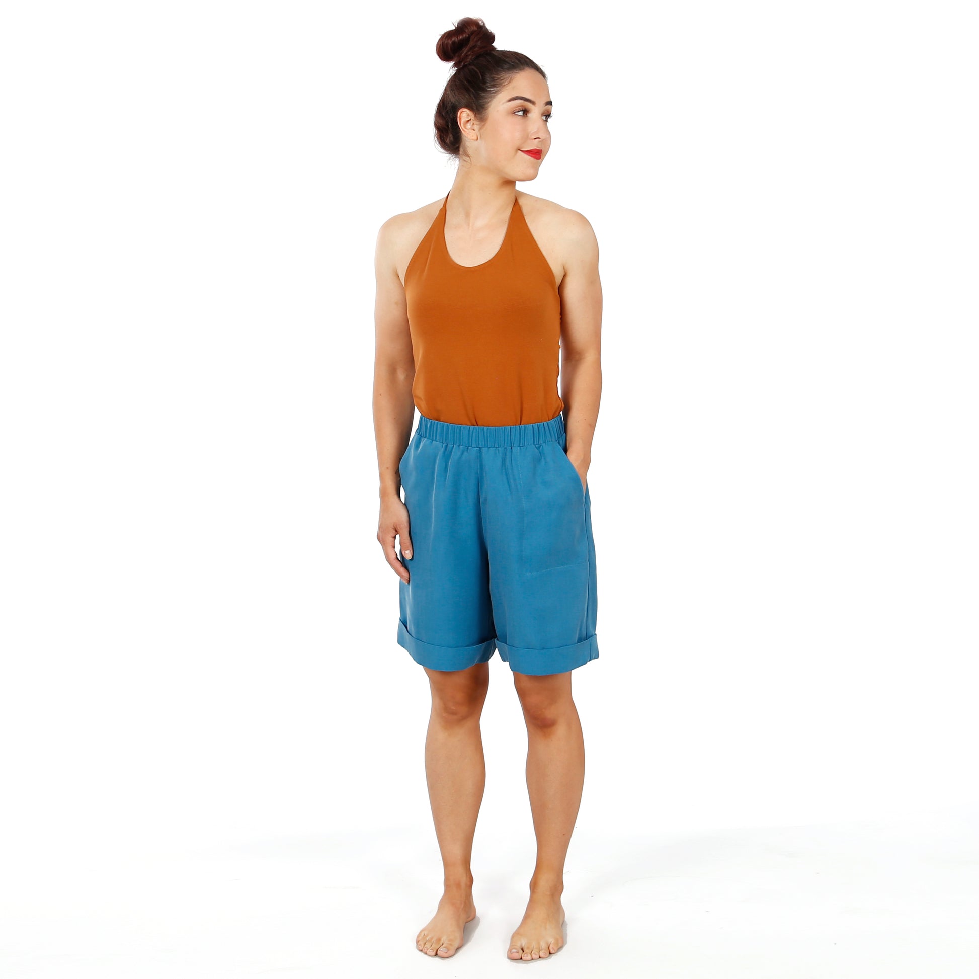 Ein Urlaub ohne Shorts? Das wird undenkbar, wenn Du einmal mit FRAU MARTE unterwegs warst. Diese Hose muss einfach immer mit, egal ob beim Stadtbummel oder am Strand. Mit FRAU MARTE bist Du immer richtig angezogen. Die Shorts punktet durch einen unkomplizierten Gummibund, eine coole kniefreie Länge und praktische Taschen vorne und hinten. Den Umschlag am Saum kannst Du auch einfach weglassen, dann kannst Du noch schneller zurück in die Sonne!