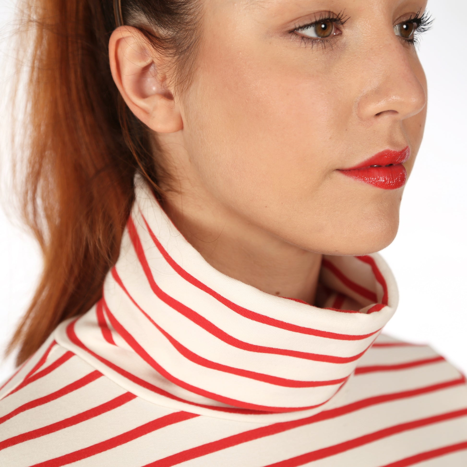 Materialempfehlung: ausschließlich elastische Stoffe wie Sommersweat, French Terry, Strick, Rippstick, Jacquard oder Romanit.
