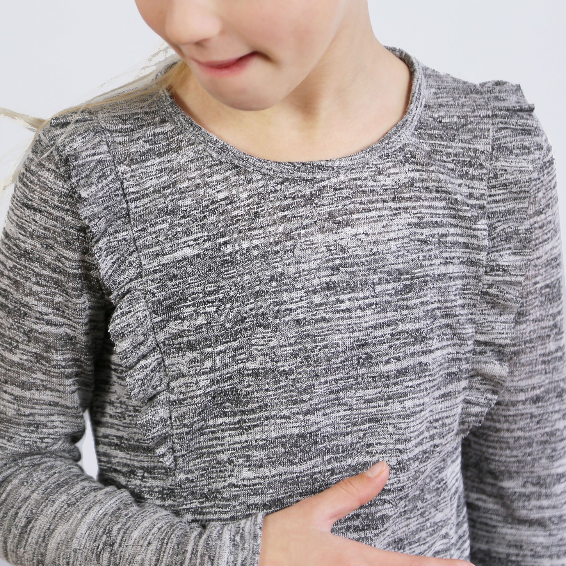 Materialempfehlung: elastische, nicht zu dicke Materialien wie z.B. Jersey, Stretchjersey oder leichter Strick. Wichtig ist ein weicher Fall, damit die Rüsche nicht zu steif wird.