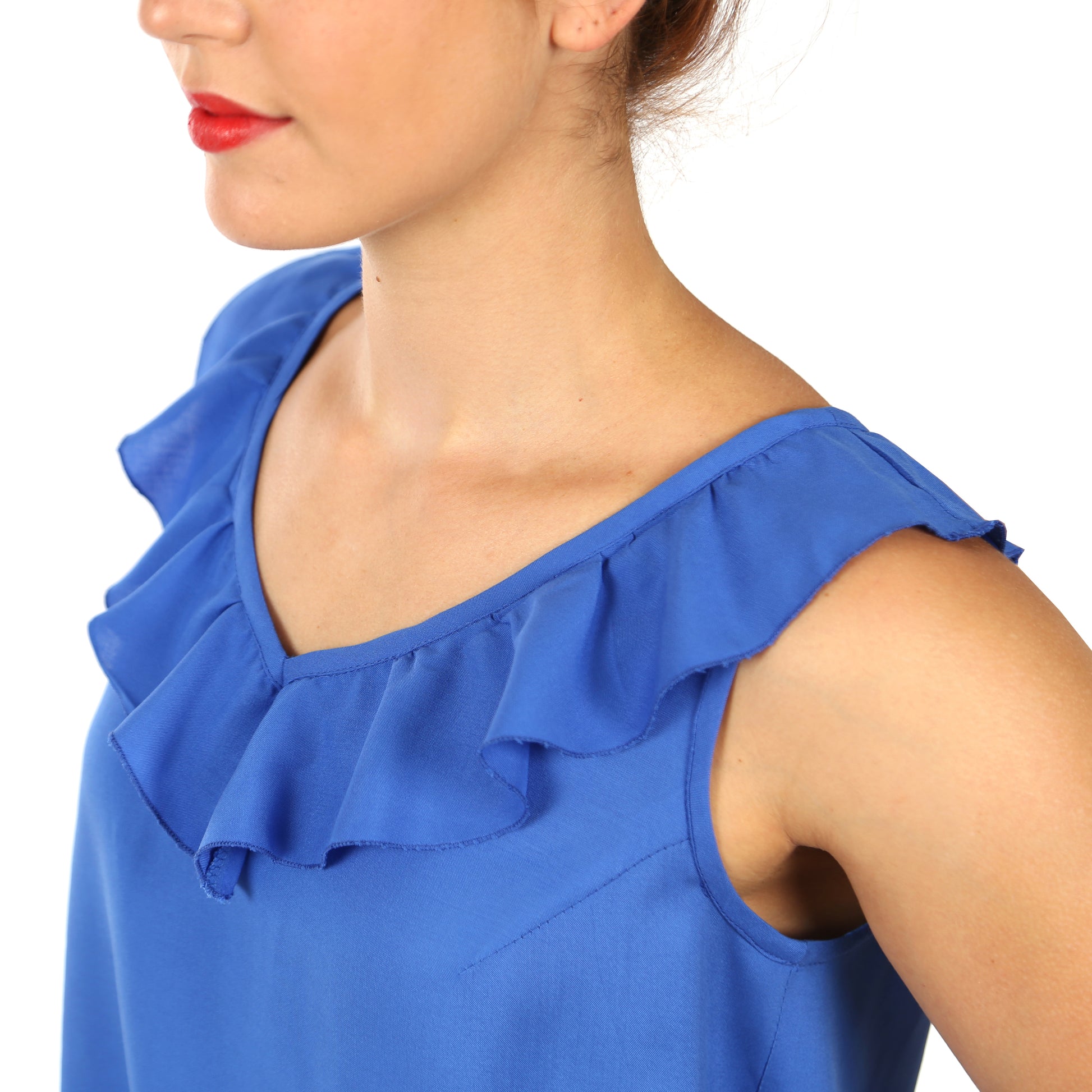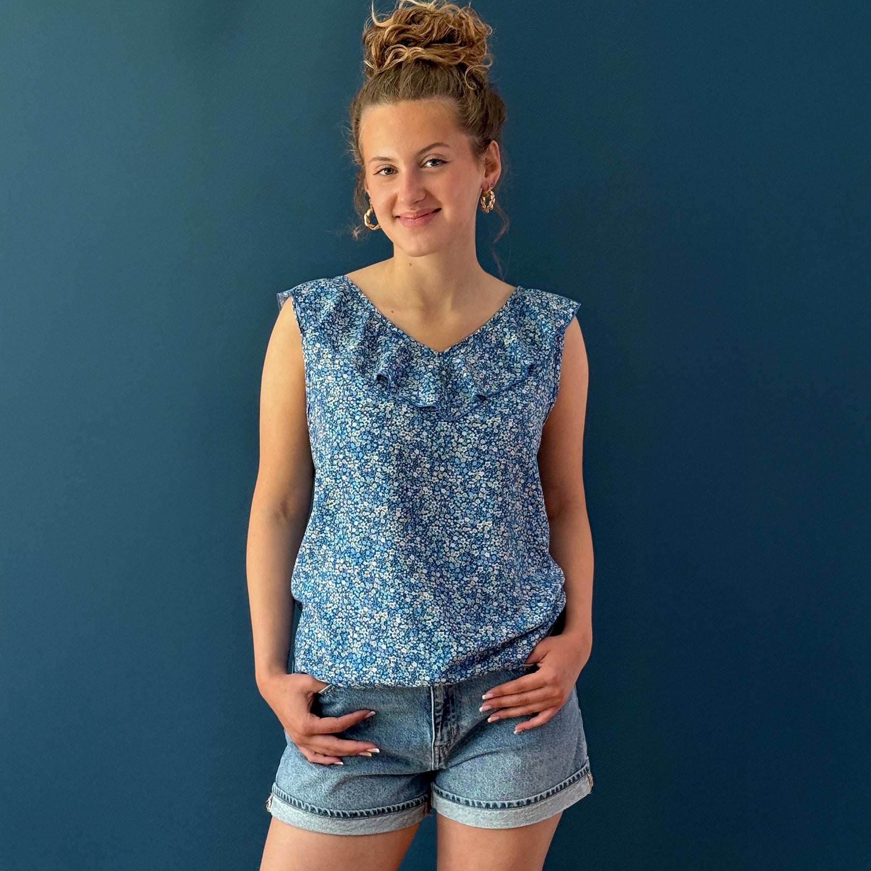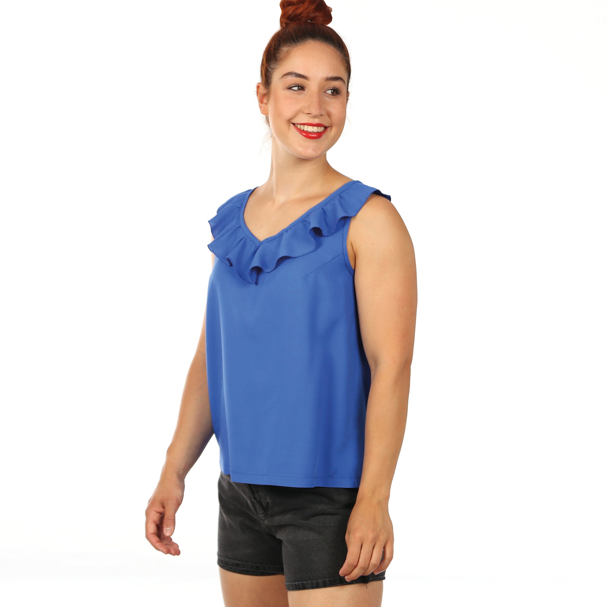 Elegant aussehen und trotzdem luftig gekleidet sein, das ist einfach mit FRAU LYDIA. Das lockere Webware-Top mit seinem verspielten Volant an den V-Ausschnitten in Vorder- und Rückenteil lässt Dich auch bei hohen Temperaturen glänzen. Die Ausschnitte sind mit Schrägband eingefasst. Für einen guten Sitz sorgen Brustabnäher.